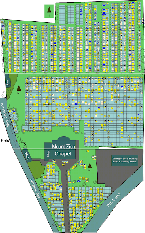 The graves in the South section have all been identified, researched and many have been photographed. Click anywhere on this map to see a bigger, searchable plan. |